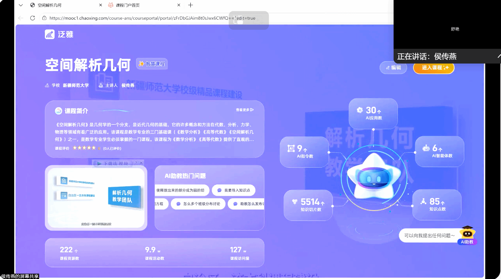 同样来自十三中的杨梅老师则聚焦智慧教育课程,重点展示了如何运用国家智慧教育平台开展备课、教学等相关工作,详细演示了平台内AI工具的具体操作方法,助力参会人员熟练掌握智慧平台使用技巧,提升教学数字化水平。